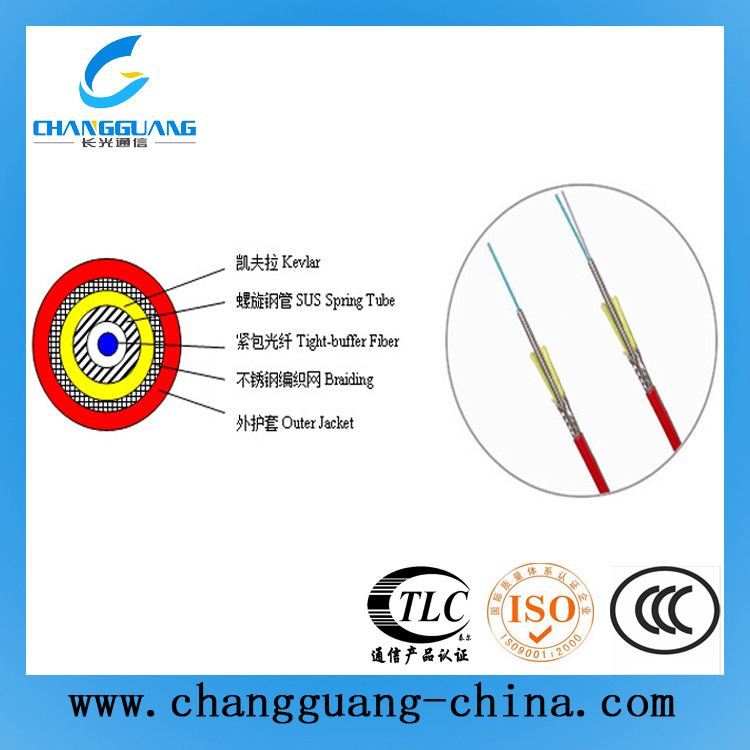 螺旋钢管铠装测温光缆是一种分布式测温系统(DTS)的通用型探测光缆,可以适用绝大多数的DTS测温环境。光缆采用高强度的双层铠装设计,具有很好的抗拉、抗压等机械性能。这种光缆广泛用于遂道消防测温,石化、钢铁、煤碳等大型工业企业消防测温,桥梁、仓库等大型建筑健康检查等。